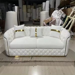 Factory Outlet European Luxury Rose Gold Leg White Chesterfield Sofa Velvet Fabric Button Tufted Living Room Couch Set Furniture
