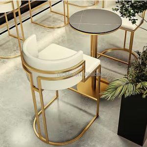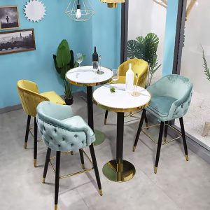 Modern Nordic Velvet titanium gold Steel High Bar Chair Leather bar stool furniture