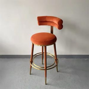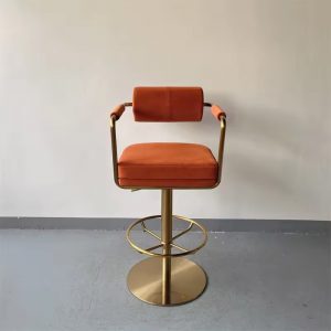 Luxury restaurant Modern bar stools kitchen wobble stools golden metal base velvet Retro Orange Bar Stool bar chair