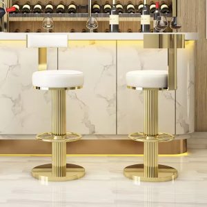 Modern Metal Base Adjustable Swivel Gold Bar Chair Luxury leather High Chair for Counter Bar Stool
