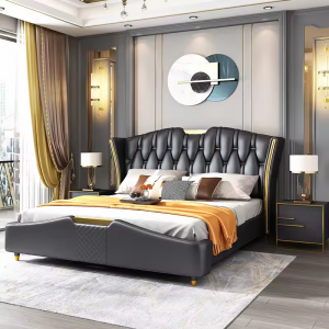 2022 new style Light luxury modern fashionable bedroom furniture leather bed set