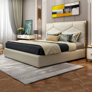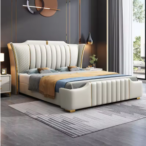 Luxury Bed Room Furniture Genuine Leather Double King Size Bed Queen new home or hotel modern bed
