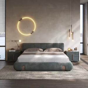Italian light luxury soft bag abrasive cloth bed modern minimalist designer high-end double master bedroom furniture