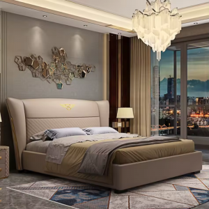 modern light high end big headboard bed luxury bedroom furniture designer king size upholstered leather bed