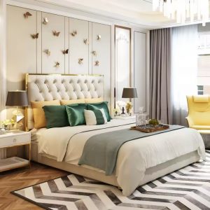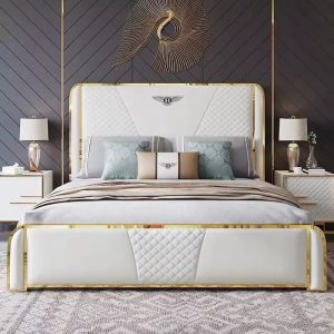 Modern Italian art luxury style luxurious Leather queen size bedroom furniture bed and night stand set