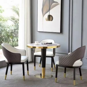 Luxury Upholstered leather Dining Chair modern Restaurant Hotel Home dining room chair with gold stainless steel frame