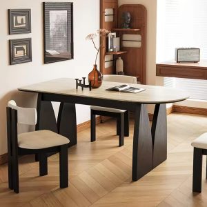 Nordic rectangular wooden black tulip table legs base dining table set sintered stone slabs 6 seater restaurant chairs furniture
