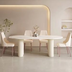 Restaurant furniture luxury stainless steel frame marble top dining tables and chairs sets for dining room