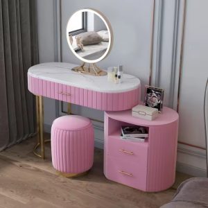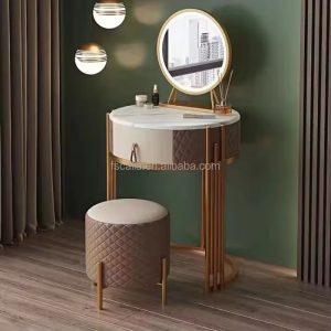 Luxury Dresser Table Marble Top steel legs console table with mirror and stool for bedroom furniture