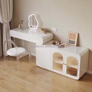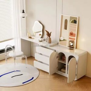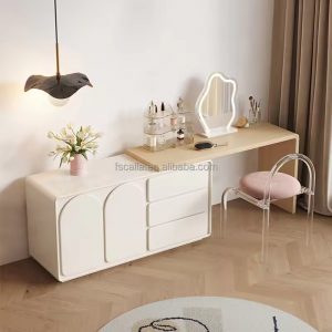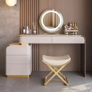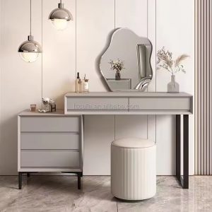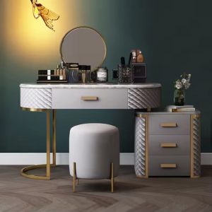 Luxury Elegant Makeup Table Antique Minimalist pu leather Dressing Table High Quality Nordic Dresser with stainless steel frame