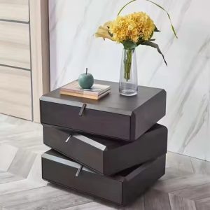 Nordic Modern Rotating Night Stand with Storage Drawers Black Solid Wood Veneer Nightstand Swivel Bedside Table