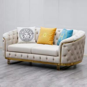 2023 new design modern Upholstered chesterfield leather Sofas with gold metal decoration combination sofa furniture