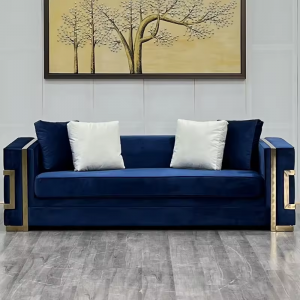 New Design blue color velvet sofa set with gold stainless steel base modern Upholstery fabric sofas for living room furniture