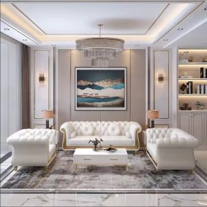 New Design Back Adjustable luxury modern Leather Combination chesterfield Sofa for Villa Living Room furniture