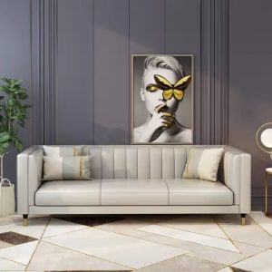 Nordic Modern Leather Velvet Fabric Hotel living room sofa set furniture with Golden leg