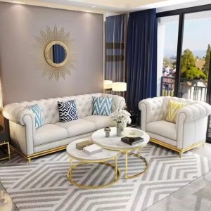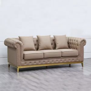 Luxury Modern Design Wooden Frame leather chesterfield sofa Living Room Furniture Sets with stainless steel leg