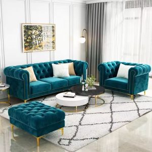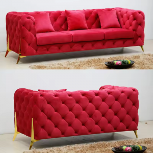 European Style 3 Seater Velvet Fabric Living Room Cushion Sofa
