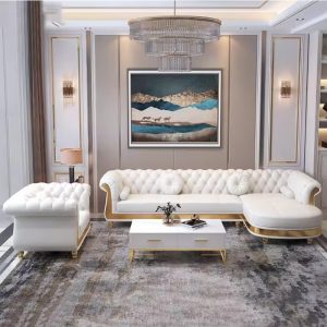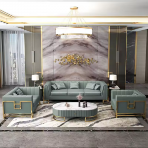 Luxury leather sofa furniture living room sectional sofa with gold stainless steel leg for home office hotel