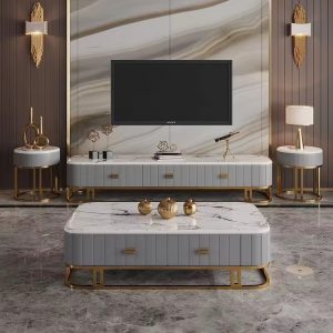 Luxury marble top coffee table and TV Stand bucket cabinet for home hotel furniture