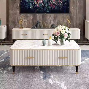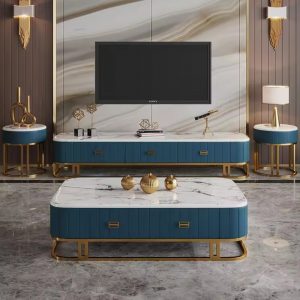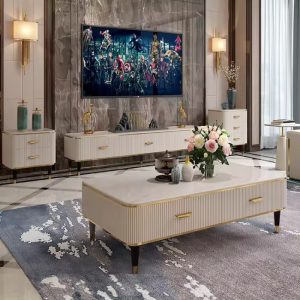 Luxury marble top coffee table and TV Stand bucket cabinet for home hotel furniture