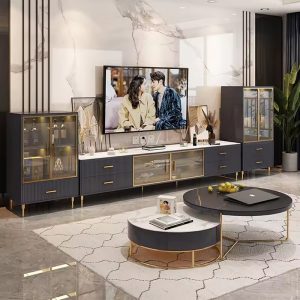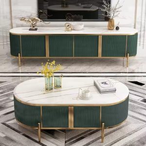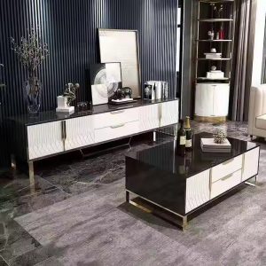 Top TV Stand and Coffee Table Set Golden Decoration Marble with Stainless Steel TV Cabinet Living Room Furniture Modern Wooden