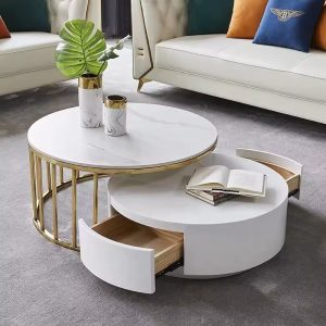 Round storage Coffee Tables Gold stainless steel frame sintered stone top nest round Coffee Table for living room furniture