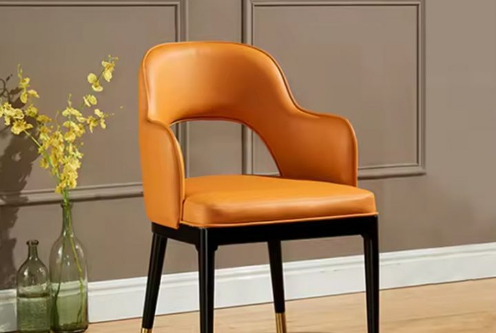 2022 Modern New stainless steel leg luxury Leather Arm sofa chair for dining room furniture