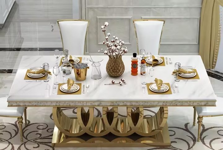 Best-selling modern luxury marble dining table and chair set with metal leg for home hotel dining room furniture