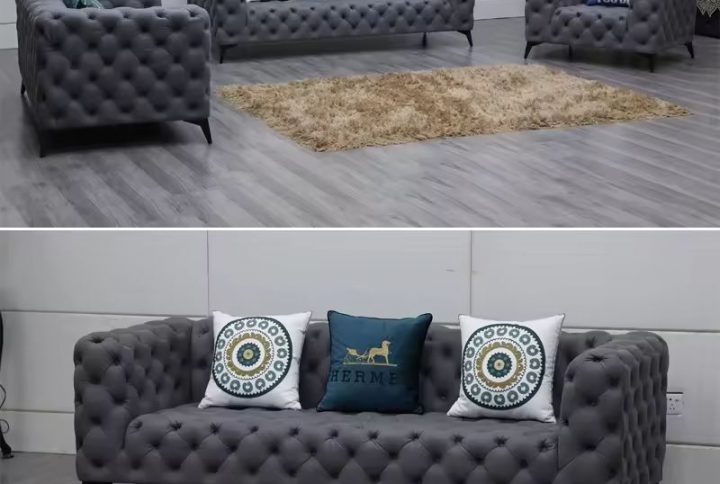 Cheap price Wholesale Linen Fabric Upholstery Chesterfield Sofa Set for living room furniture