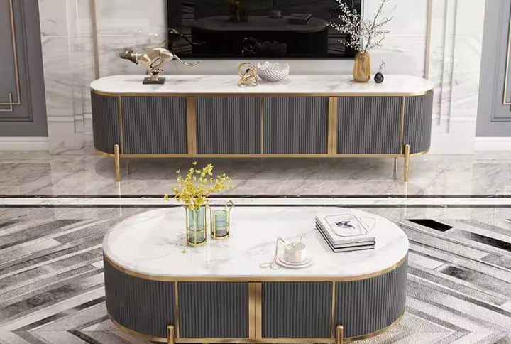 Circle Coffee Table Factory Custom Marble for Hotel Restaurant Apartment Living Room Furniture Modern Stainless Steel +marble