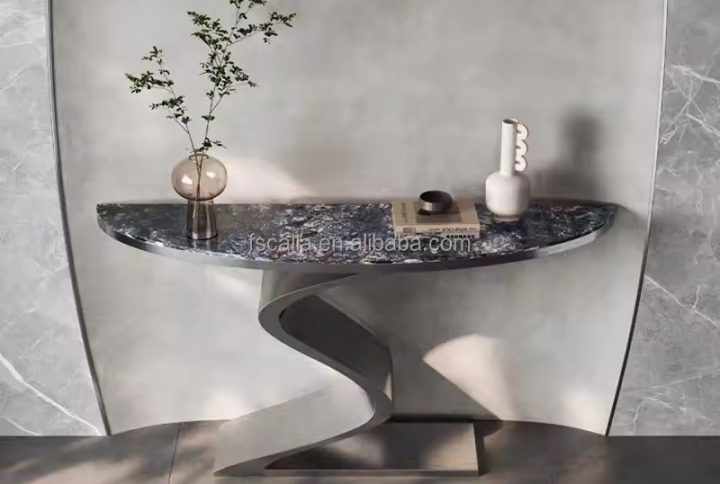 Decorative crafts hallway entrance table modern living room furniture stainless steel gold metal white luxury console table