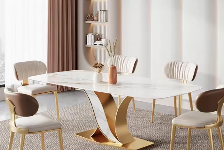 Be the first to review “Dining table with gold stainless steel frame and decoration marble top for hotel restaurant dining room furniture”