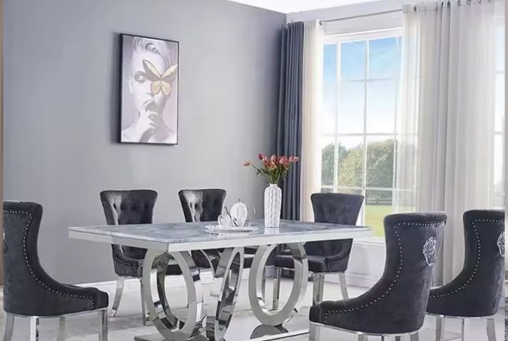 Dressing table modern marble top steel legs console table with mirror and stool for bedroom