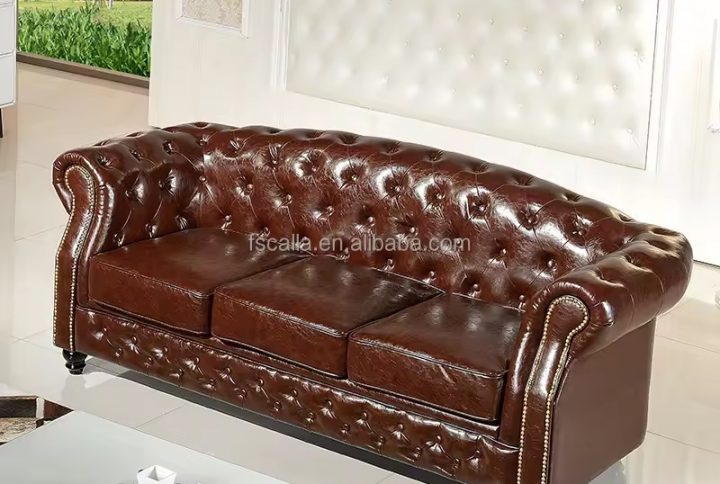 Hot sale American Industrial Style Art Hotel Cafe Sofa 1 2 3 seater Combination Living Room Retro Leather chesterfield Sofa