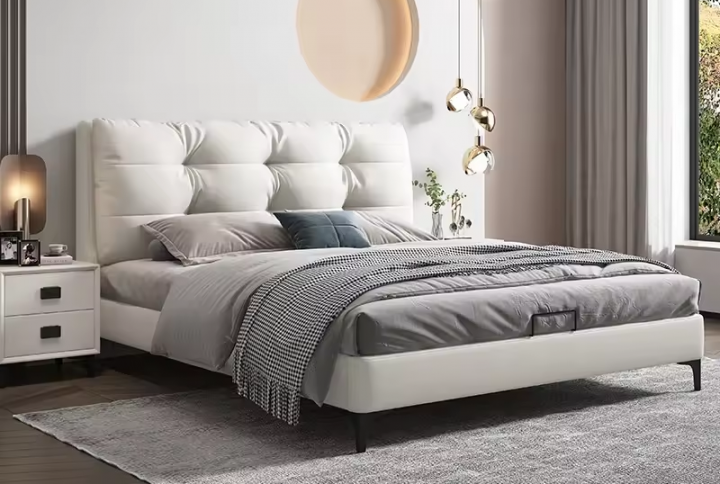 Hot sales French Luxury Leather Ultra Double King Size Frame Upholstered Bed for Modern villa Bedroom Furniture Home hotel
