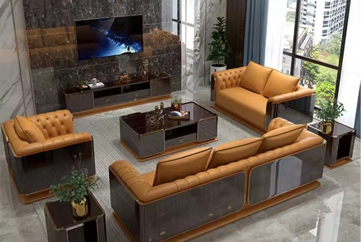 Light Luxury Modern Leather Sofa Set Combination Living Room Furniture home 3 seater couch Stainless Steel Arm new sofa for sale