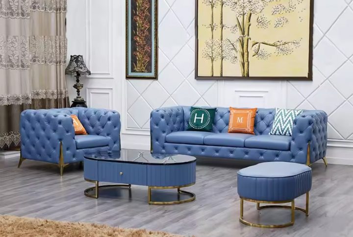 Living room furniture 1+2+3 seats Lounge Chesterfield Sofa set with Metal leg