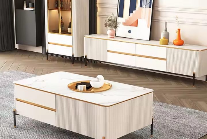 Living Room Furniture Gold Stainless Steel Glass Round coffee table Luxury sofa center tables