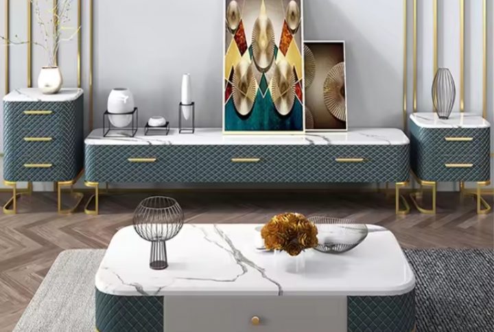living room furniture light luxury stainless steel leg modern coffee table and TV cabinet set