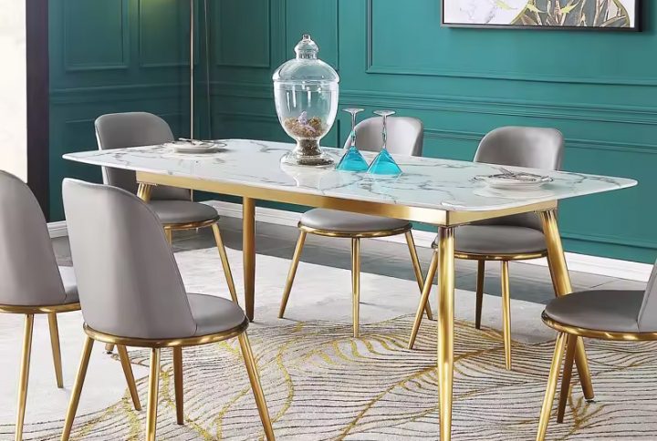 Luxury design silver Round Marble Dinning Table Set for dining room furniture