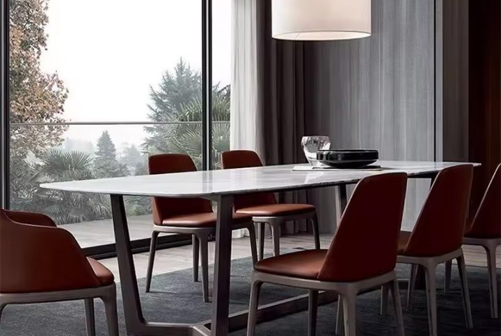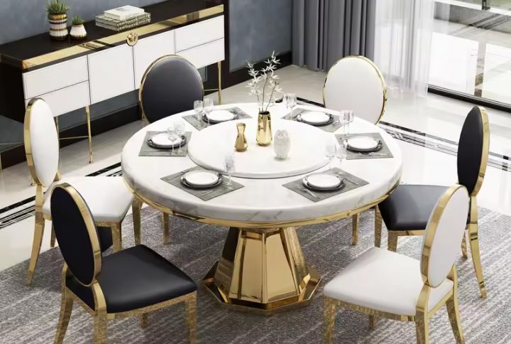 Luxury dining room table and chairs set with golden leg Marble top dining tables