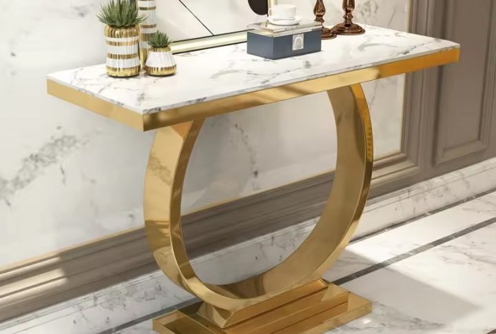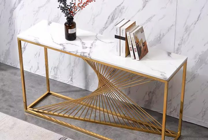 Be the first to review “Luxury gold stainless steel console table set marble top for living room dining room Hallway Corner table furniture”