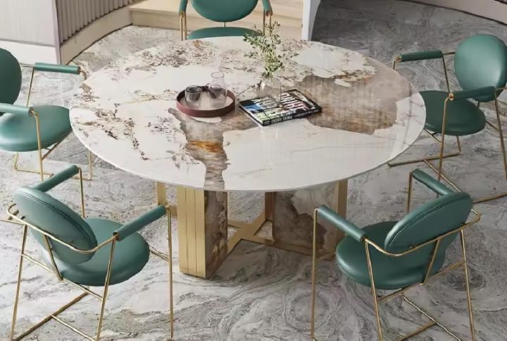 Luxury gold stainless steel frame marble top dining table and chair modern Rectangle Restaurant Dining room Table