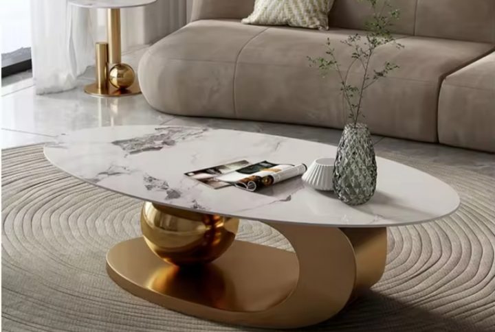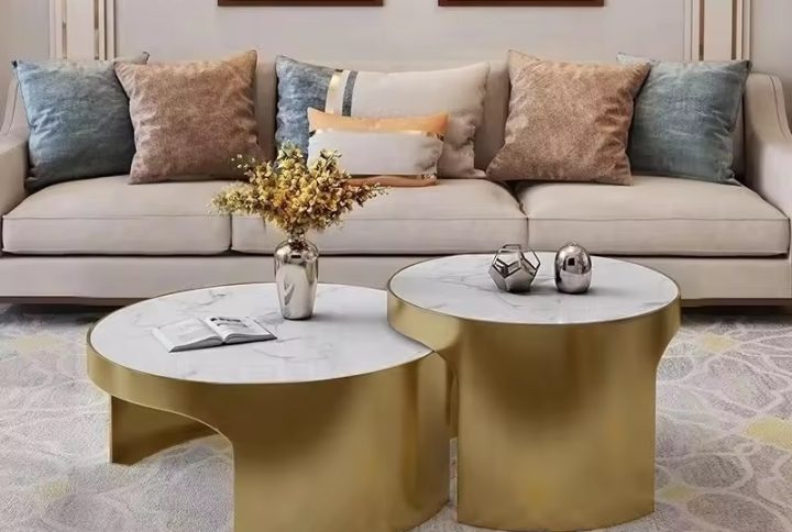 Luxury gold stainless steel frame round marble top coffee table for living room sofa center tables furniture