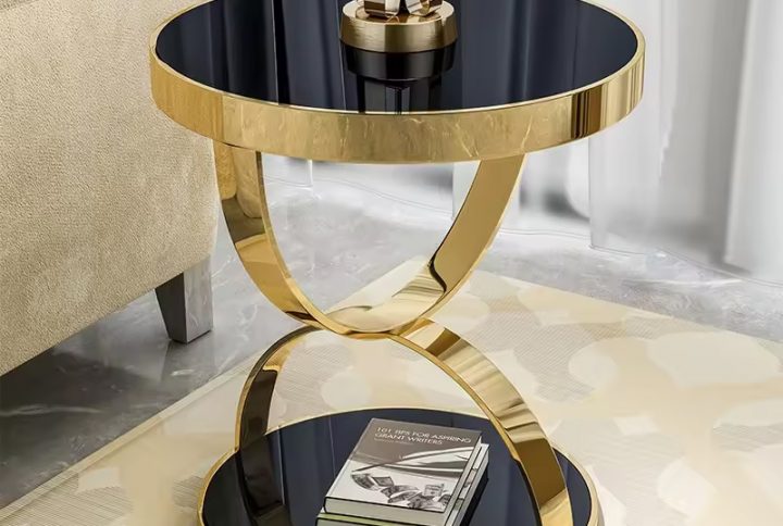 Luxury gold stainless steel frame round marble top side table coffee tea tables for living room furniture