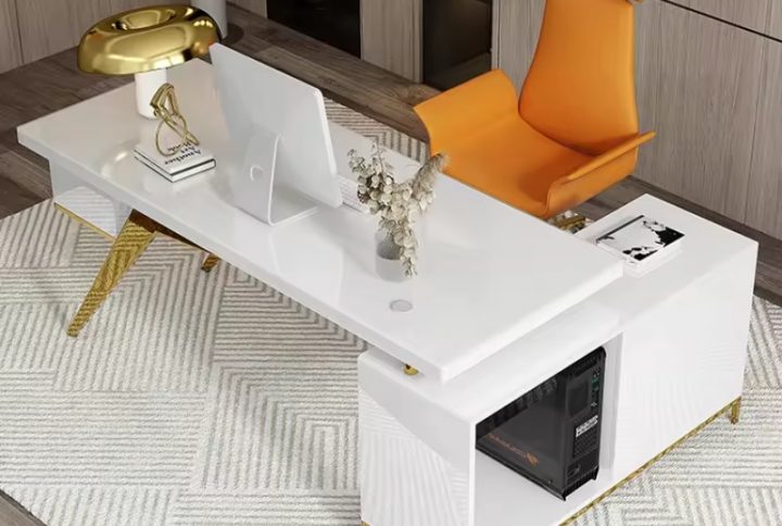 Luxury Golden Stainless steel frame office desk work furniture office table for working