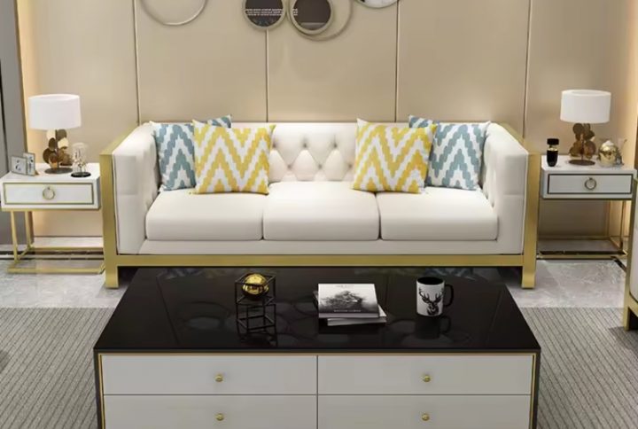 luxury Living Room furniture stainless steel tv stand and coffee table set with wooden cabinet