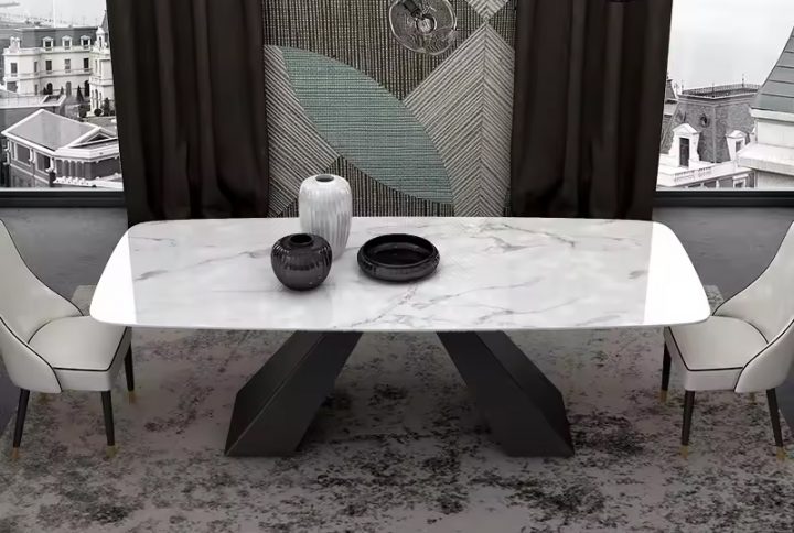 Be the first to review “Luxury Modern silver Square Dining Table Set 6 seater with stainless steel frame for dining room kitchen furniture marble top”