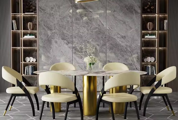 Be the first to review “Luxury villa furniture hotel desk fabric chair boucle revolving armchair with metal leg for Restaurant dining room chair”