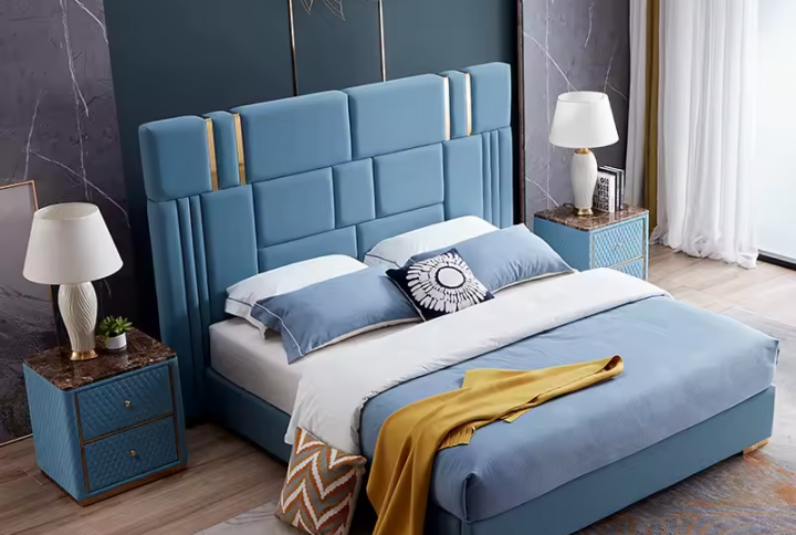 Modern dressers Luxury design vanity makeup table leather and stainless steel dressing table with mirror and stool